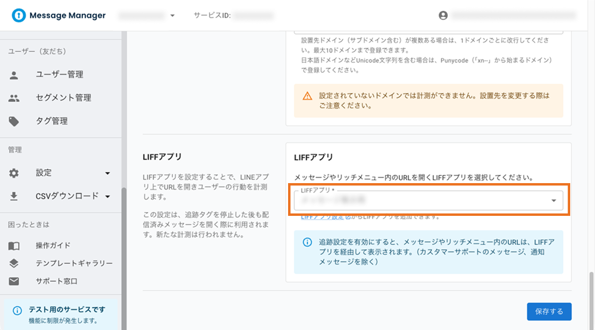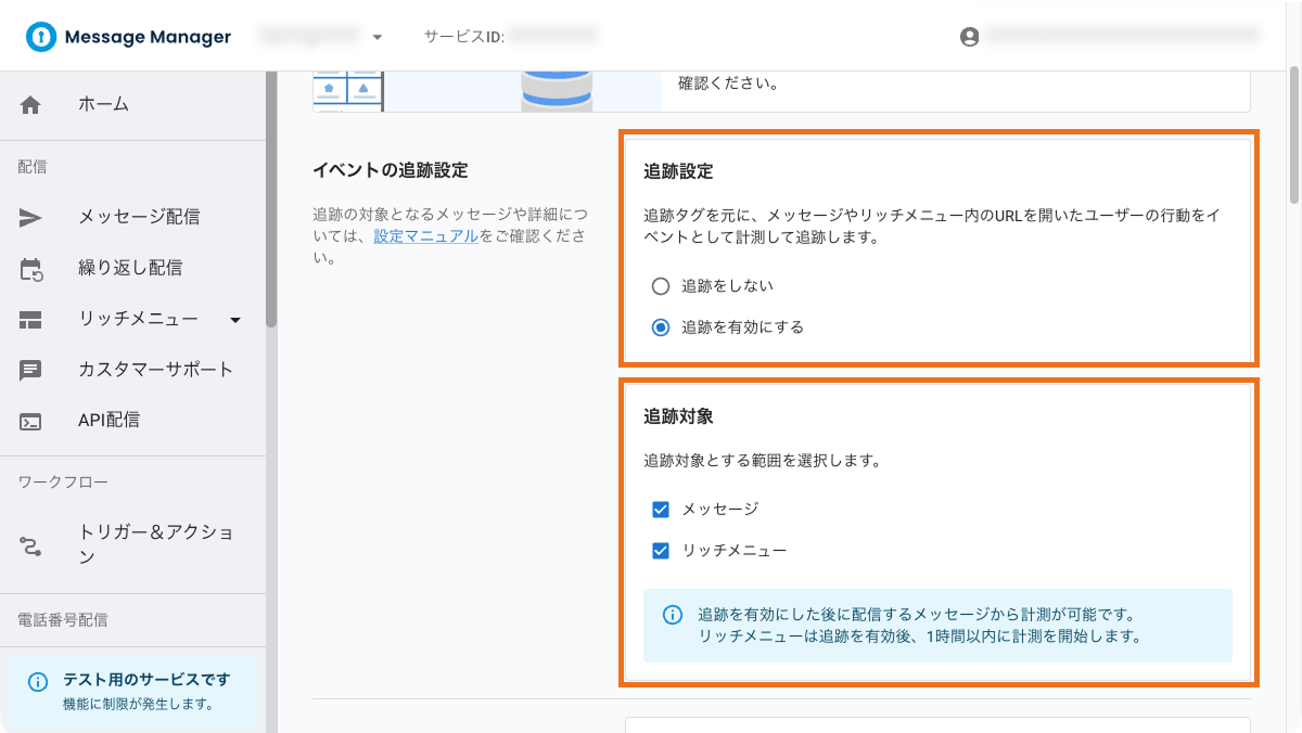 ※ 追跡タグを停止した後も、配信済みメッセージを開く際にこの設定が使用されます(新たな計測は行われません)。